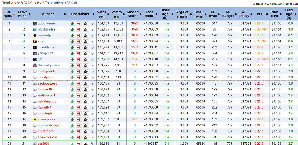 Here are the stats at 3:05 pm est for the witness top 20. Speaking of, have you cast your witness votes yet? Are you voting dead witnesses??
