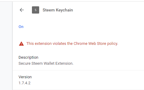 What's up with this? I discovered my steem keychain extention deactivated, I have to dig through and turn it back "on". I saw this funny little message in red under the extention in chrome. So... what gives?