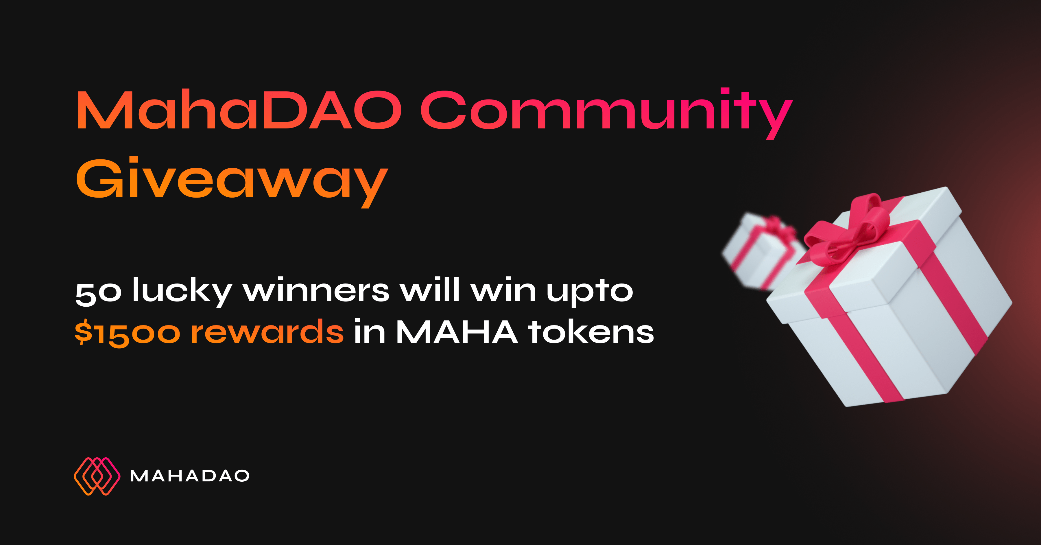 50 lucky winners can win up to $1,500 in MAHA tokens. Share with your friends and earn more entries using the Refer-A-Friend option below.