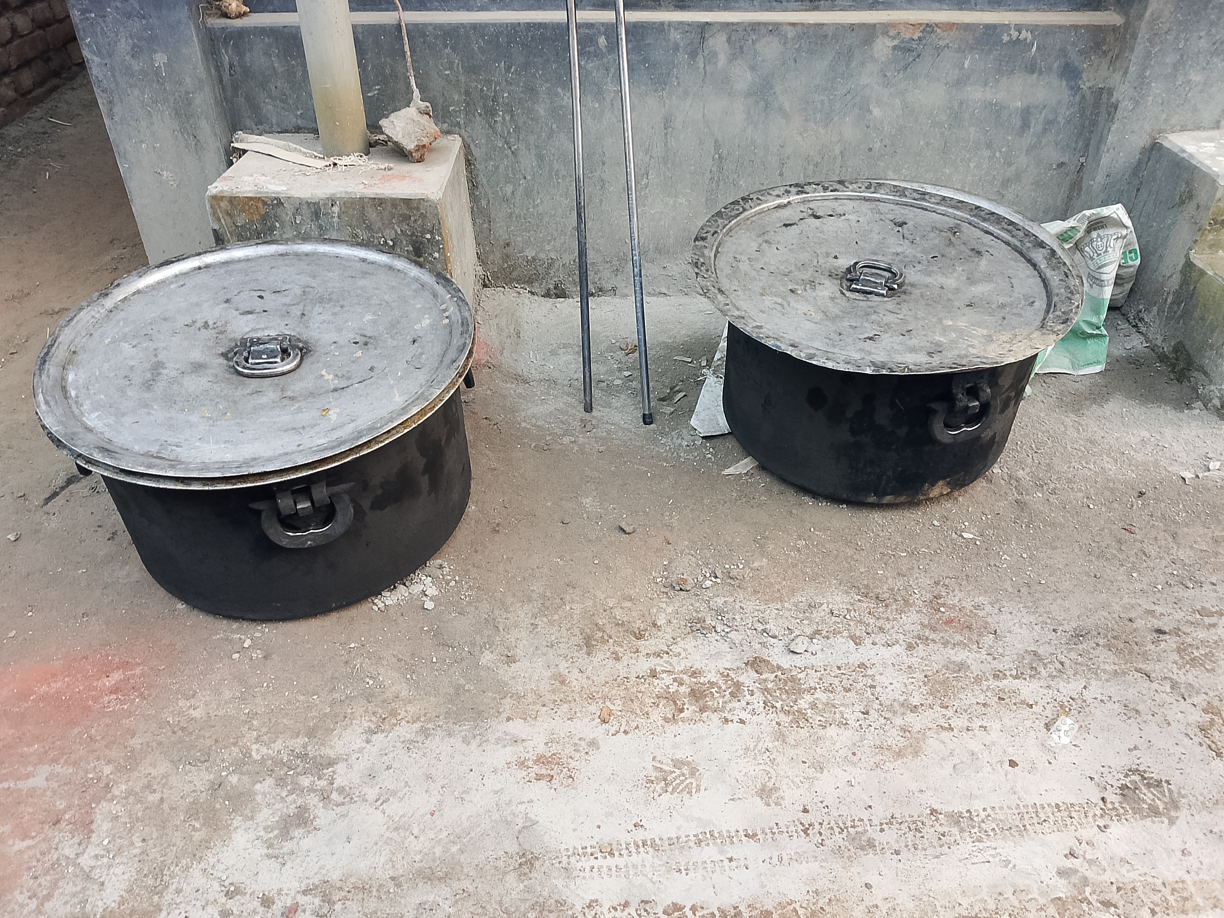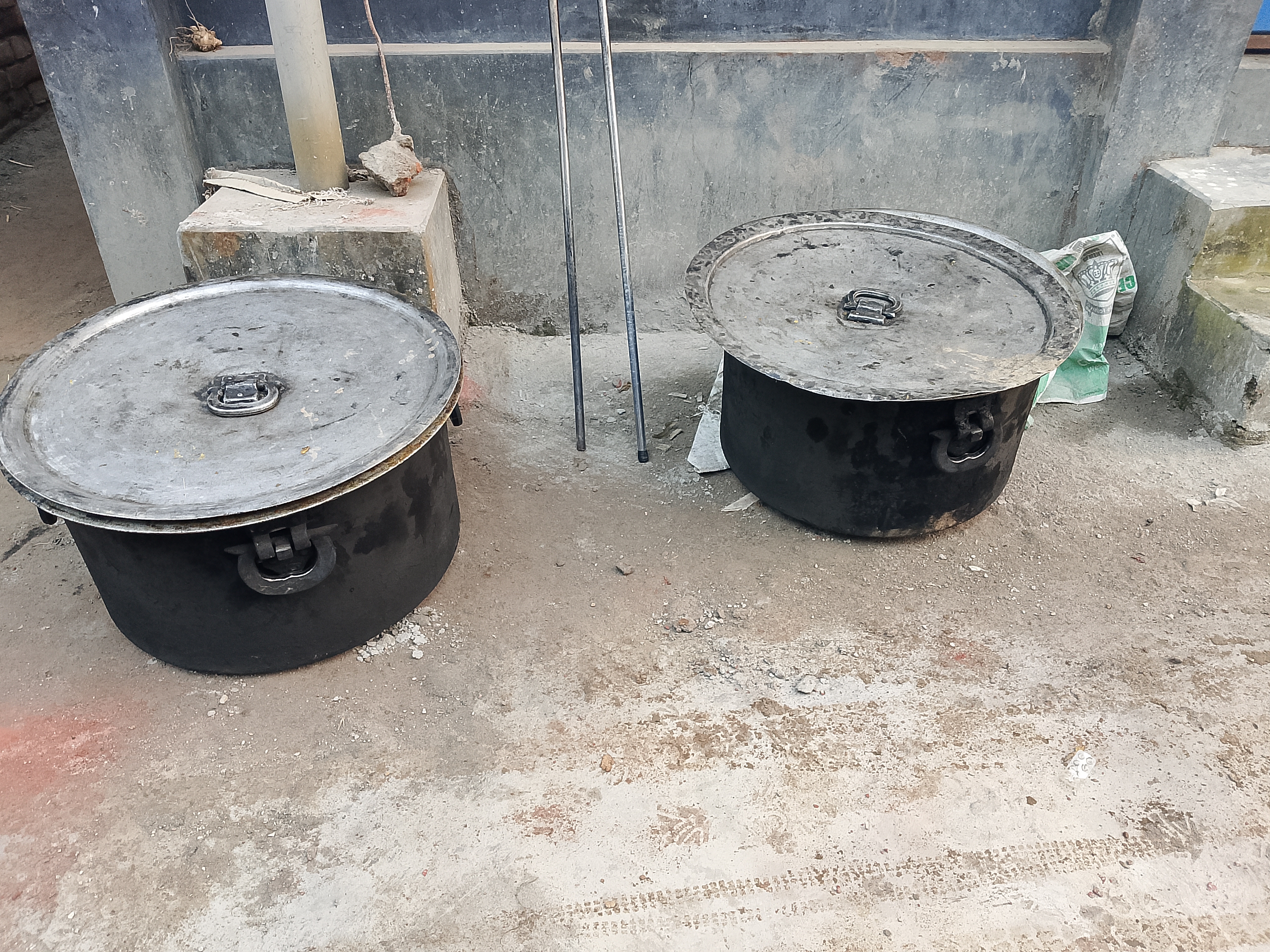 As a result, whenever they are needed, we rent and bring them, and as many as required can be rented and brought. Renting them has been very good, and today the pots have been brought and kept here for cleaning. They will be used for cooking, and later they will be used to cook nicely and then sent to the market.