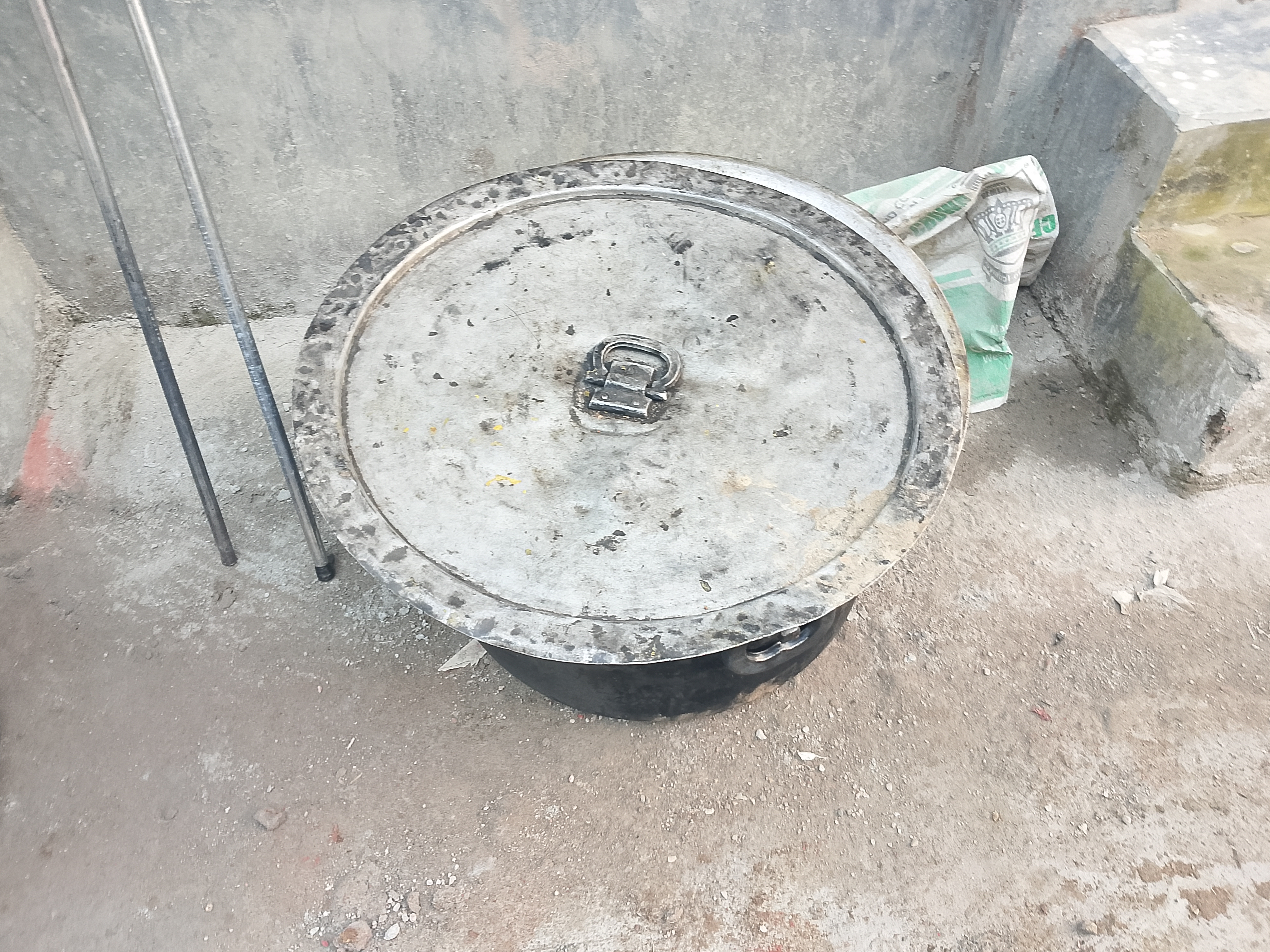 Large cooking pots have been brought for cooking. There are two large steel pots here, and they are good for cooking nicely, which is why the pots were brought. Each pot here is necessary, and there is also a hammer with them. These are mainly rented from the market during cooking time because buying them requires a lot of money, but by renting we get them at a low cost.