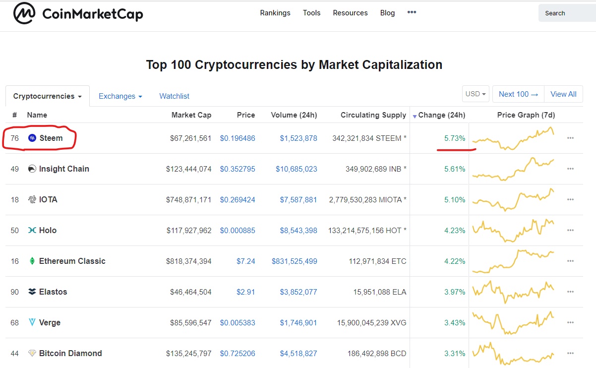 Steem is currently the #1 gainer on CoinMarketCap!