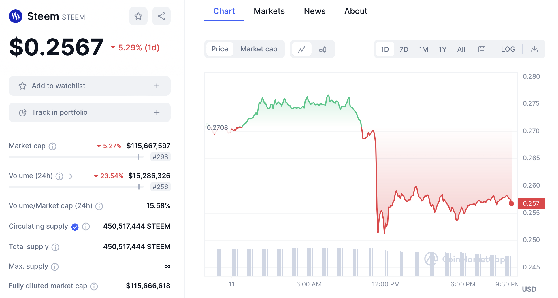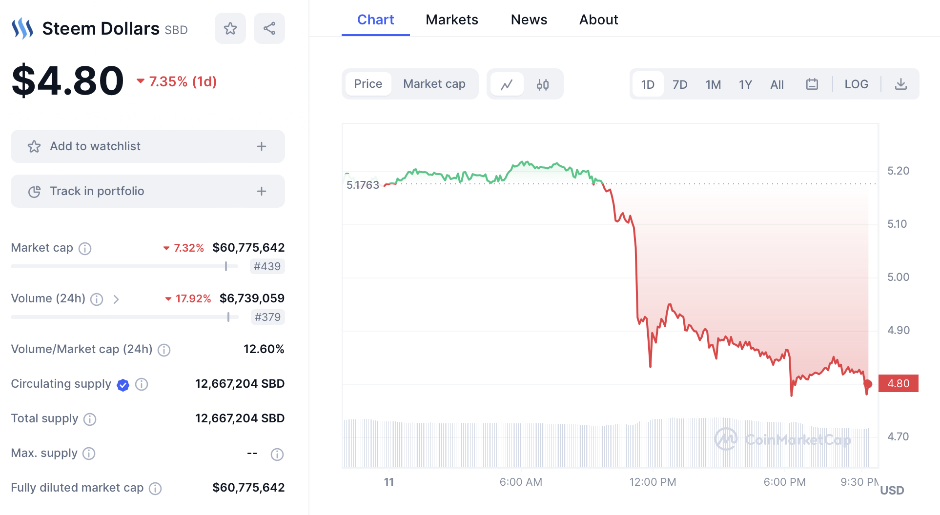 Steem&SBD price for December 11, 2023juddsmith079 (56)in #steem • 2 years ago Steem : $0.2567 SBD : $4.80 #sbd