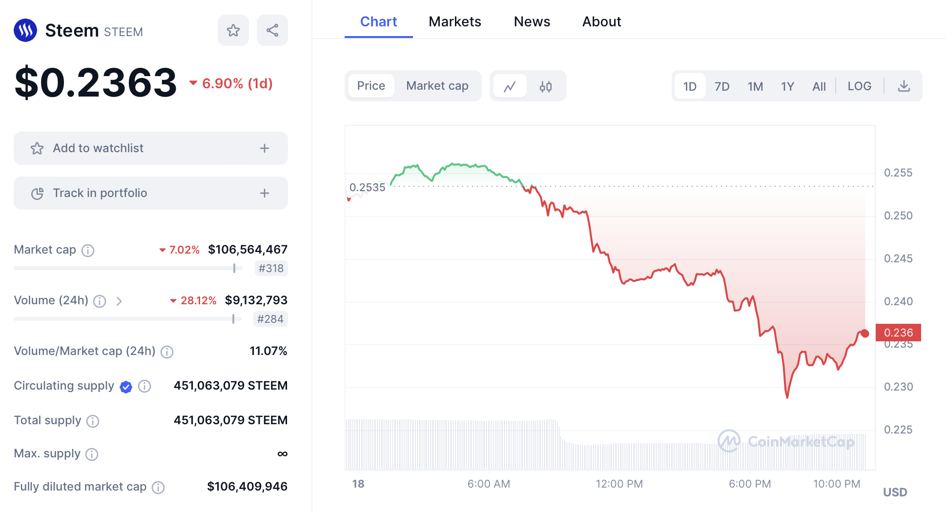 Steem&SBD price for December 18, 2023juddsmith079 (56)in #steem • 2 years ago Steem : $0.2363 SBD : $4.34 #sbd
