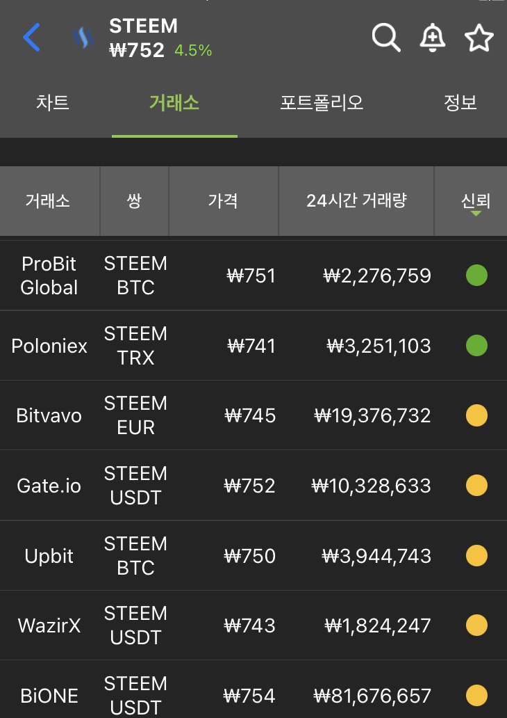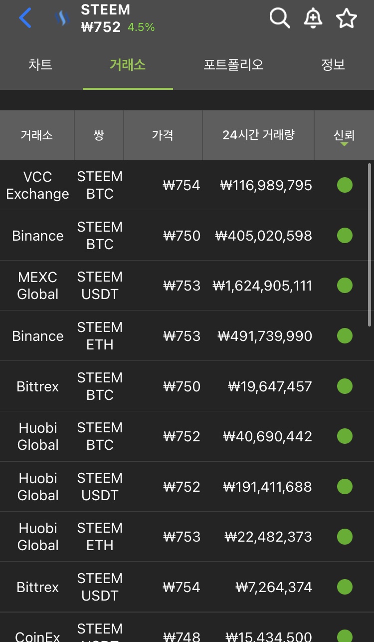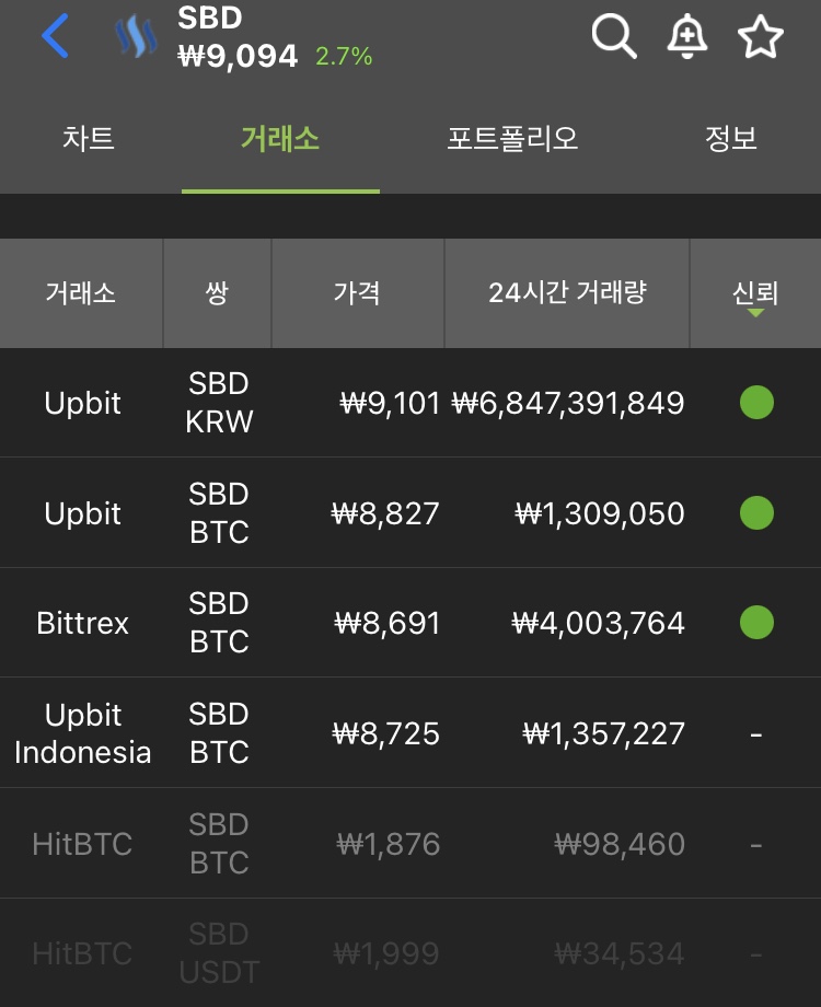 Steem/SBD 증권 거래소 목록