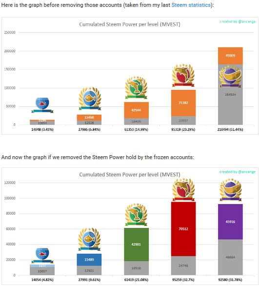 Now, our new blockchain, while still certainly far from perfect (stake-weighted voting just means the rich win), it is a big step in the right direction. Check out this comparison of the market-share, pre- and post-fork, created by @arcange: