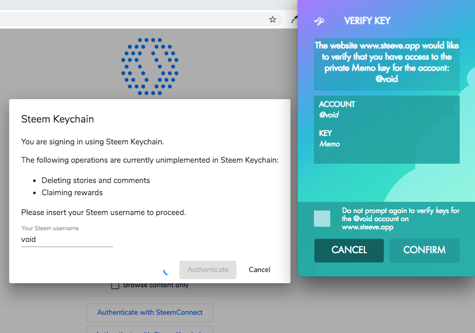 Steem Keychain is not complete yet, though, so you won’t be able to delete posts and claim rewards when authenticating in this way. Any other blockchain operation should work as before.