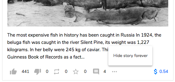 Every story card has a More menu now that contains a button to hide the story instantly. A message is sent to the backend that you don’t want to see that story ever again. When receiving recommendations later, the story will not be shown again. This way you can further tailor your feed and we also will take your “dislikes” into account when calculating recommendations for you next time ;)