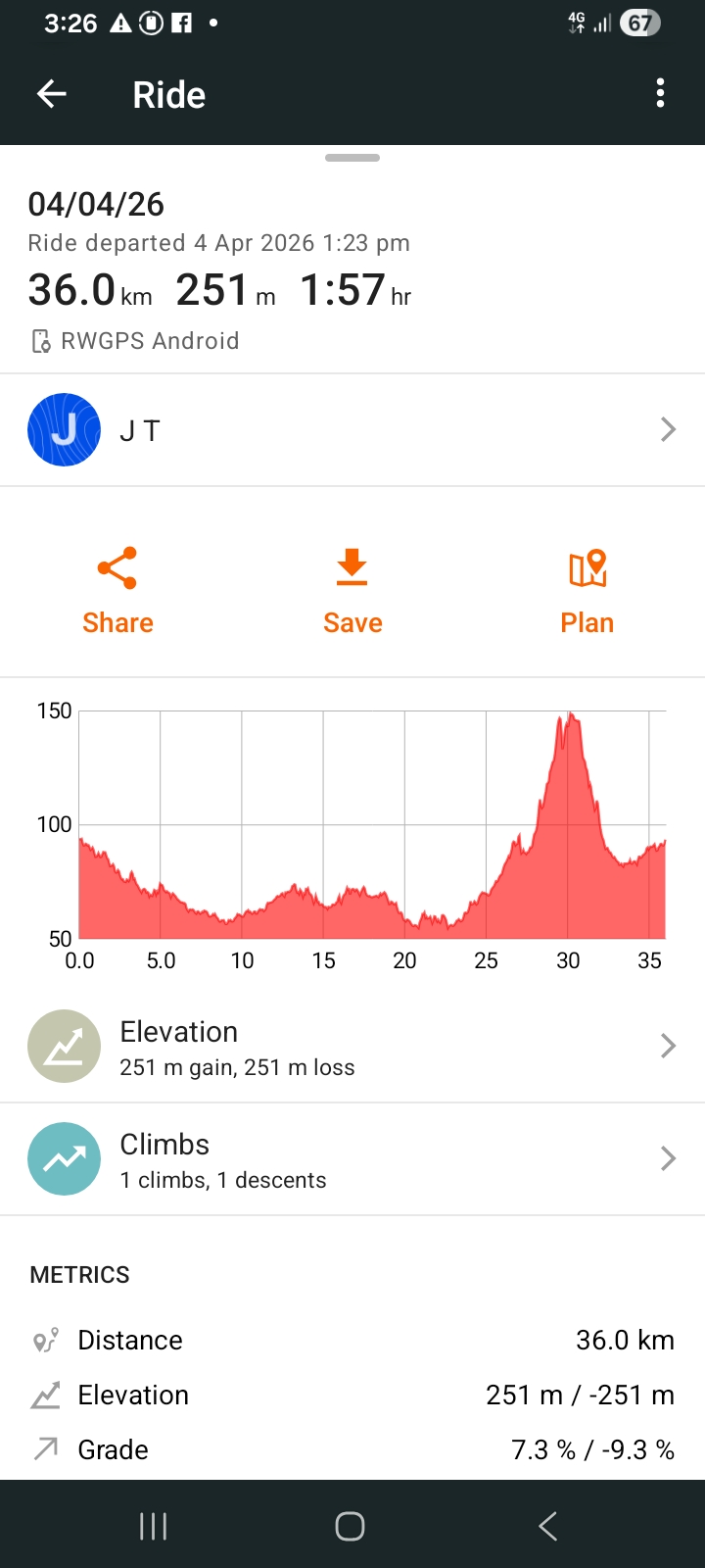 Stats from todays ride which is 400M short of yesterdays one, i did miss a little section today and will try harder tomorrow.