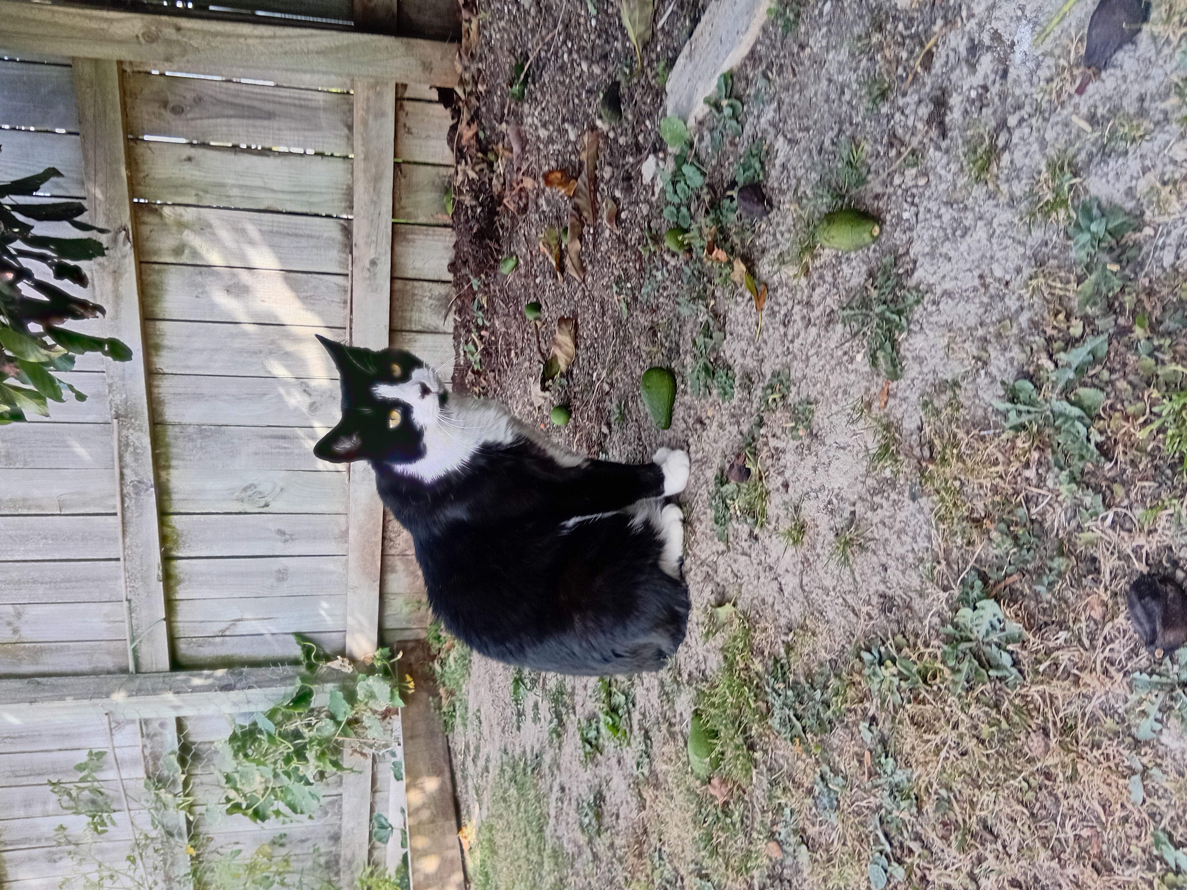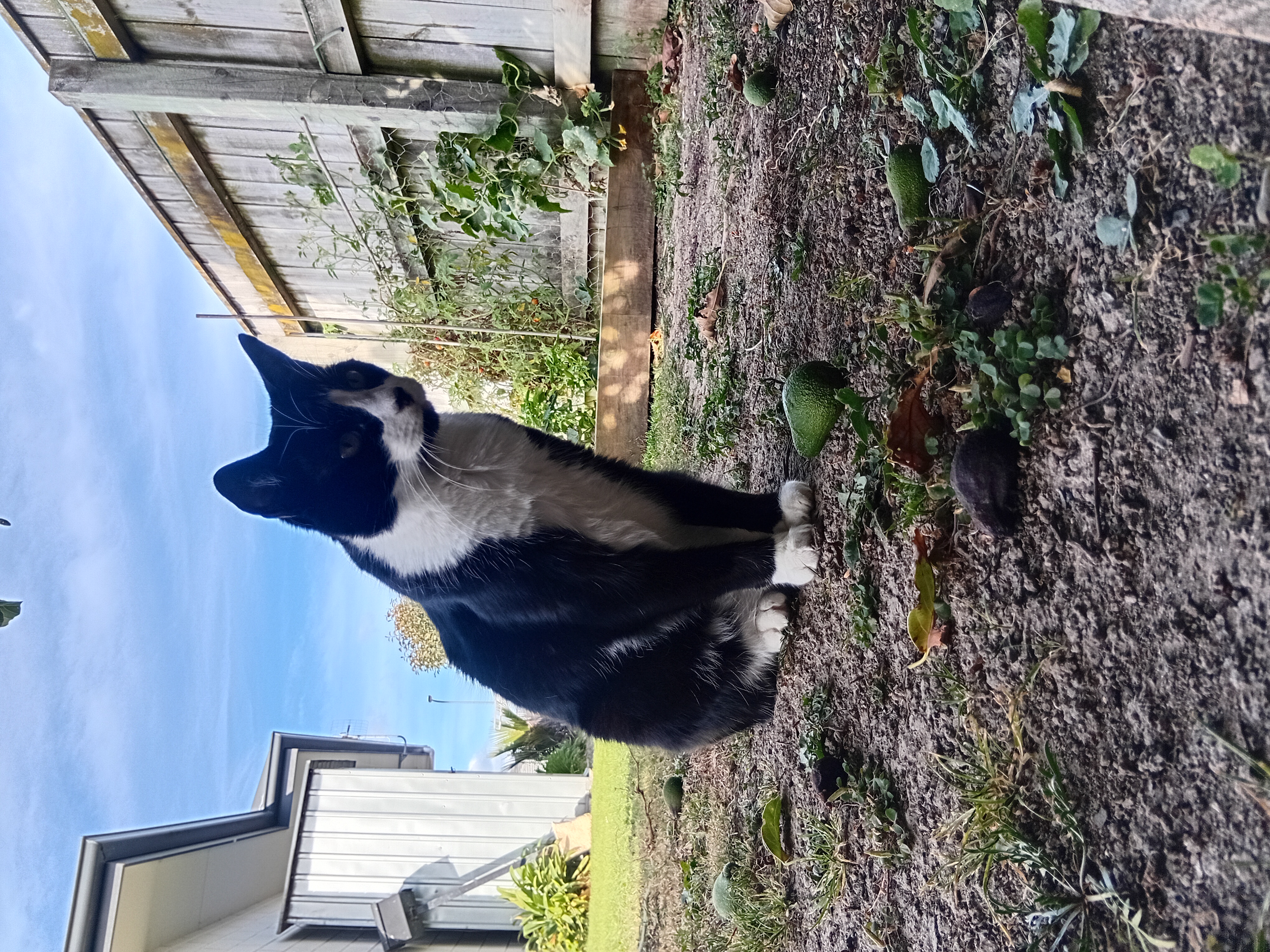 After my shower and some much needed water i was watching Smudge sitting in front of the Avocado tree, he is looking for birds in the tree.