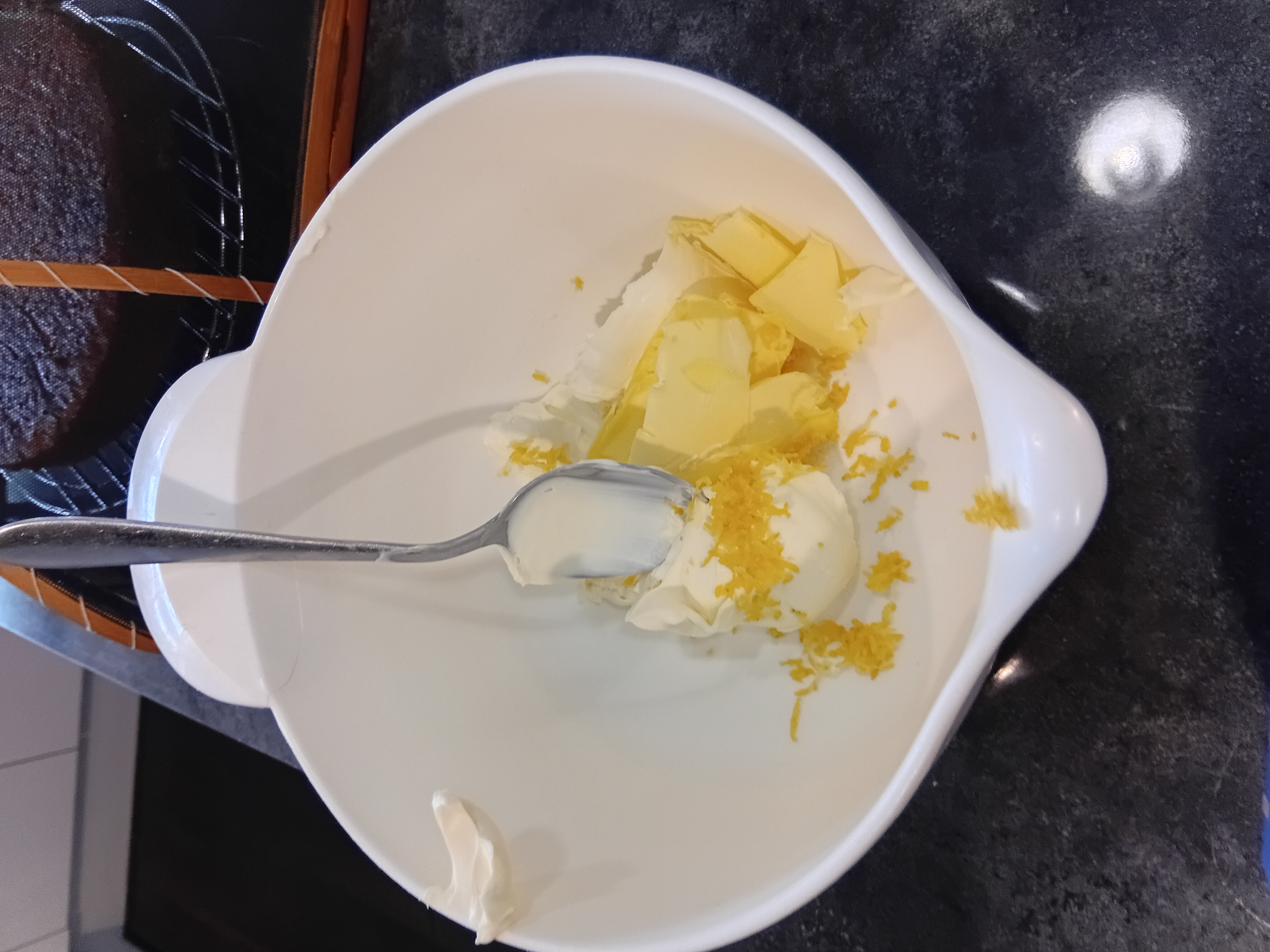 The cake has cooled down and now the icing can be made.