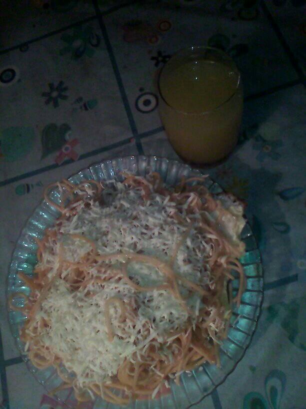Saludos mi gente de steemit, espero que todos se encuentren muy bien. Espero que la estén pasando muy bien.. Yo por aquí estoy muy bien, por aquí a estado lloviendo mucho... Ahora me la paso encerrado como niño bueno en mi casa jeje.. Aquí esta una foto de mi cena de esta noche, un espagueti con huevo y queso y un poquito de jugo de manguito jeje...
