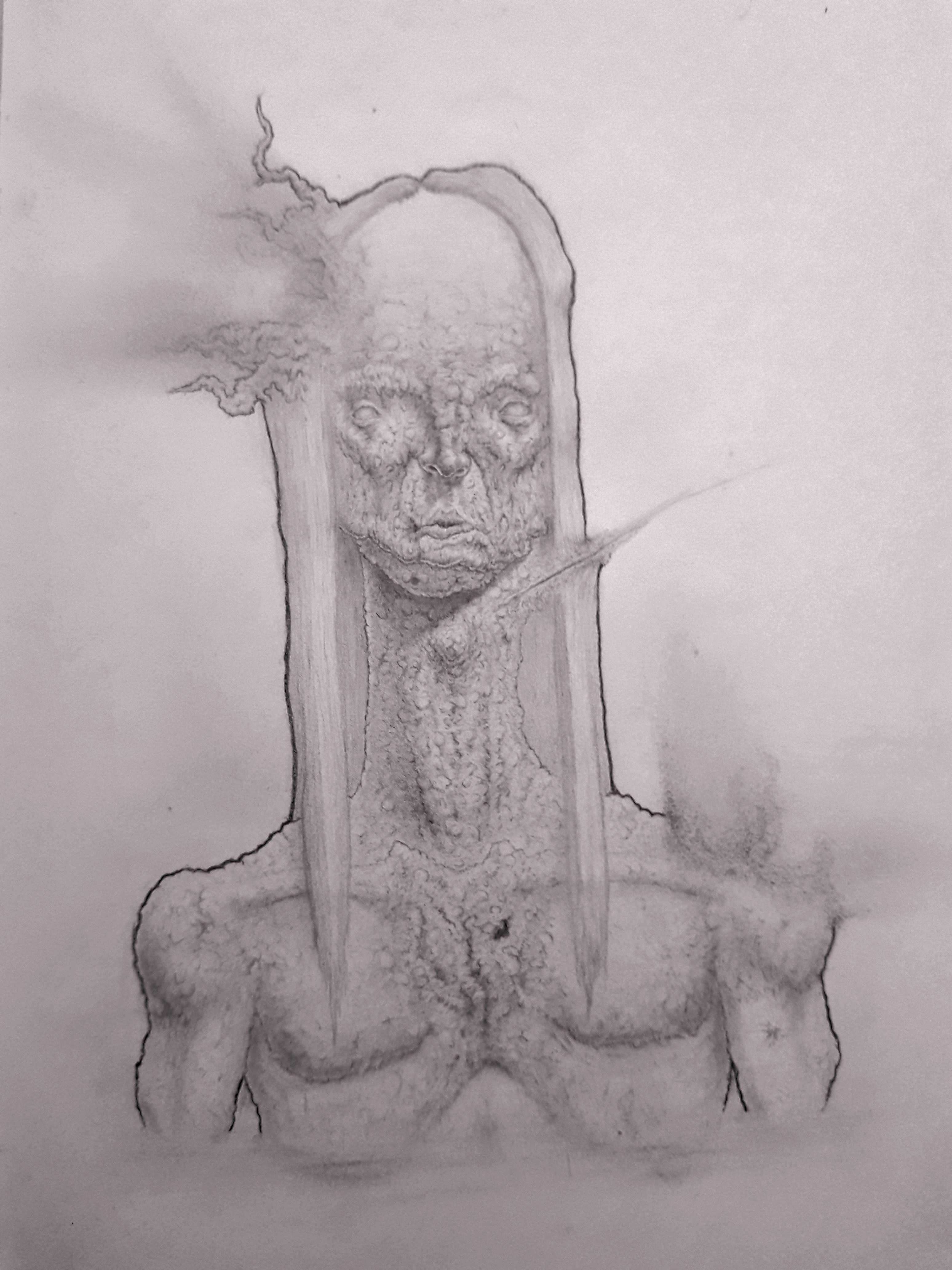 This drawing was done with various grades of pencils a Blending Stump as well as a paint brush for blending.