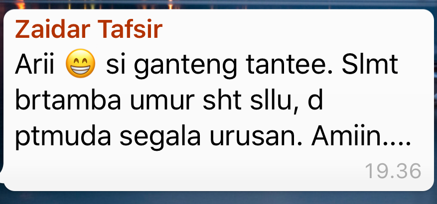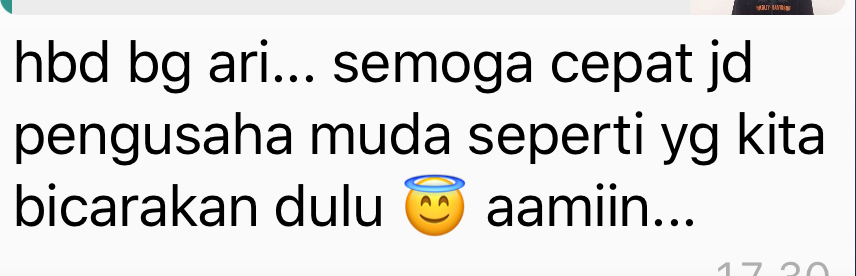 “Hbd bang ari, semoga bang ari panjang umur, sehat, tercapai cita- cita bang ari amiiiiiiiin...”