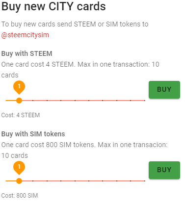 Every card cost 4STEEM or 800SIM tokens and you will get random card, every card has it own rarity and price!