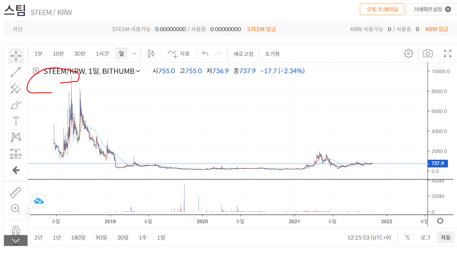 steem in bithumbmyphj (35)in #steem • 4 years ago 빗썸에서 steem 시세를 3년동안으로 보니 엄청 많이 떨어진 거군요.. 비트나 이더는 올타임 신고가를 갱신 중인데,, 스팀은 조금 아쉽네요.. 스팀도 같이 같으면... 아 4천원대가 그립네요.. #bithumb #steemkrw