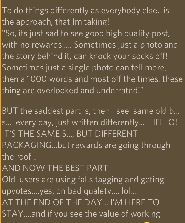 More important, you are printing the money, why you don't clearly tell/ foster good content creators? If we write something that will be the first page on Google Search (and yes, there are many examples from my community) it's the free advertisement for Steemit.