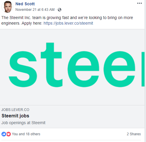 It was posted organically on Ned's page; it wasn't an automatic ad. And as for the hope... I think we're all hoping for the best, but surely Ned had a grasp on the reality of the situation. Seeing the steady decline of the crypto market, it's strange to say "growing fast" when a 25% downturn in the market results in laying off 70%+ of your team.