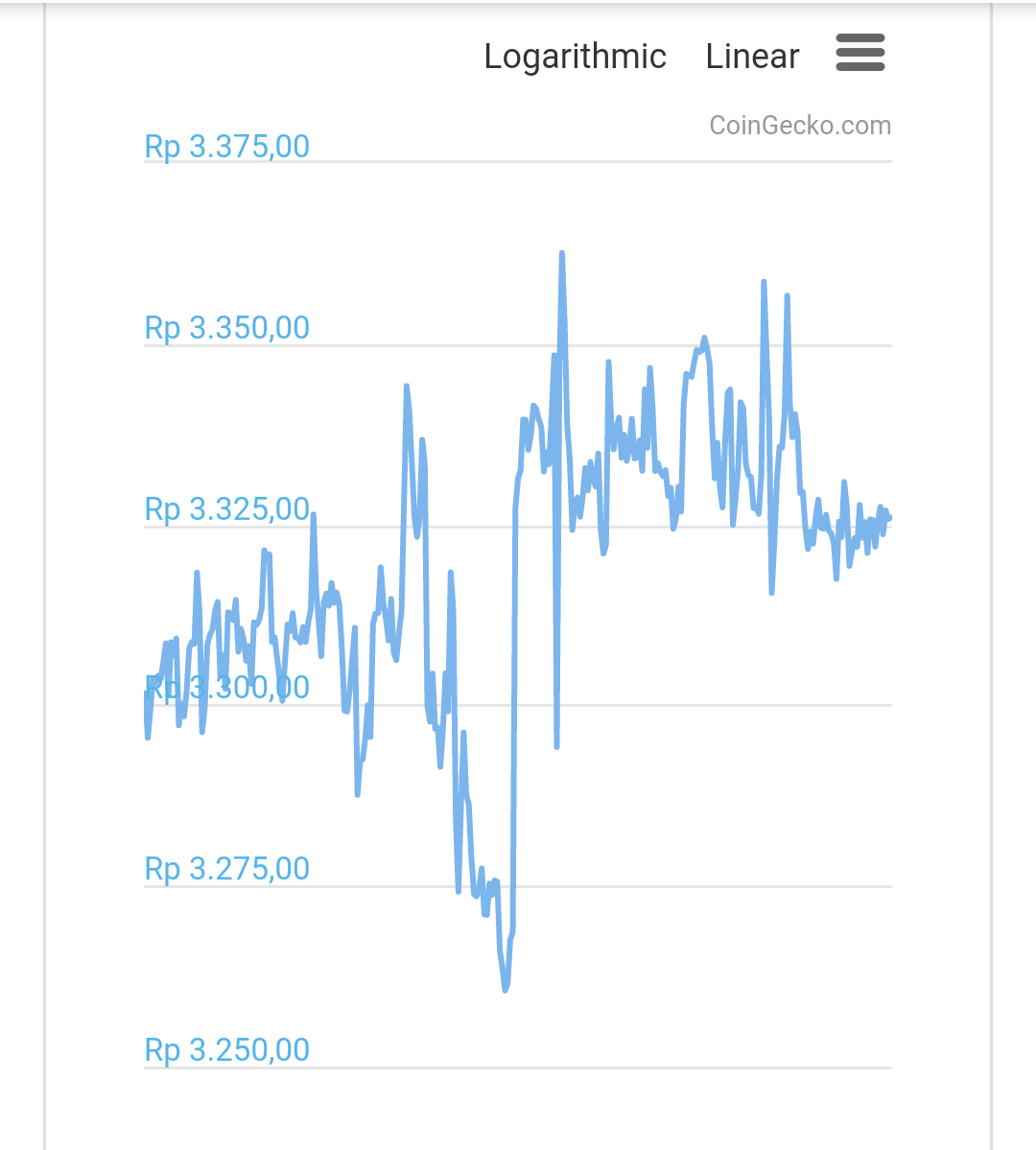 Berikut ini adalah harga Steem terbaru pada pukul 17:50 WIB, berdasarkan grafik dibawah ini harganya masih berkisar pada angka Rp. 3.325 dan tidak ada kenaikan yang signifikan untuk harga coin yang satu ini.