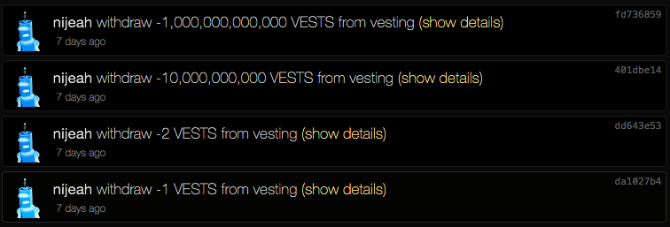 Attention! Large disruption in STEEM blockchain occurred 15 hours before due to negative VEST withdrawal attempt. Thousands of missed blocks. Panic across the earlyadopted short streets. `$detect-human-panic` came back affirmative. @nijeah culprit. Originator of troll account unknown. Obvious reversal of Haejin name. Some links to witnesses unspoken in case of retribution. Infamy of weird parallels leading to before the blockchain began its spun.