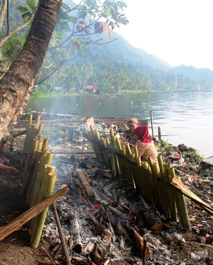 We see from the side of the beach or lake. their activities were evident. while waiting for the time they had predicted to find perfect results. they fill their activities by trading LEMANG on the edge of the lake or the sea. make use of visitors who travel on the coast.