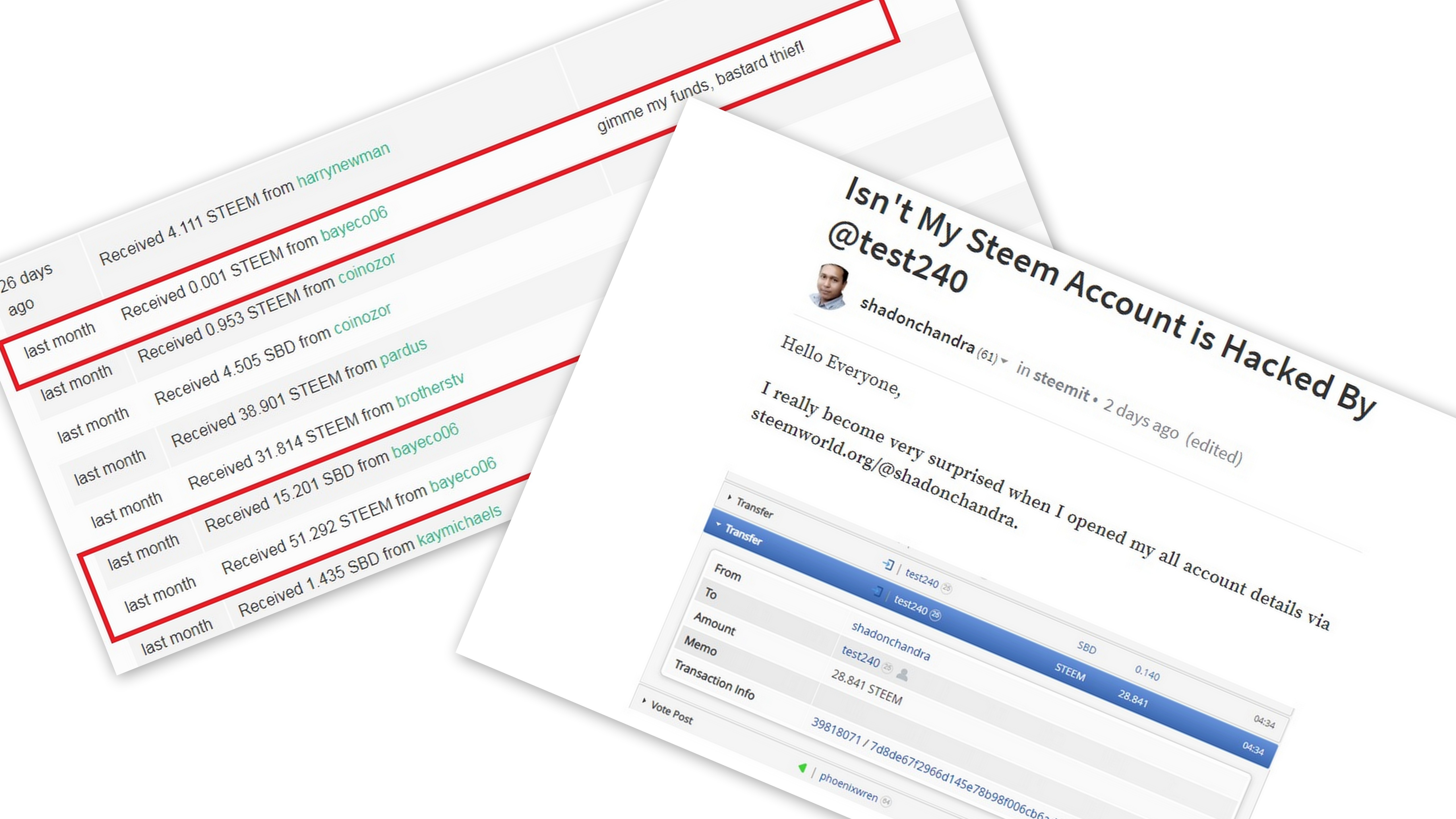 One mysterious hacker is hacking accounts of Steemians since last three months. The hacker account is @test240 and he/she is stealing both SBD and Steem from the accounts of the victims. He/she is transferring Steem/SBD to @blocktrades for trading.