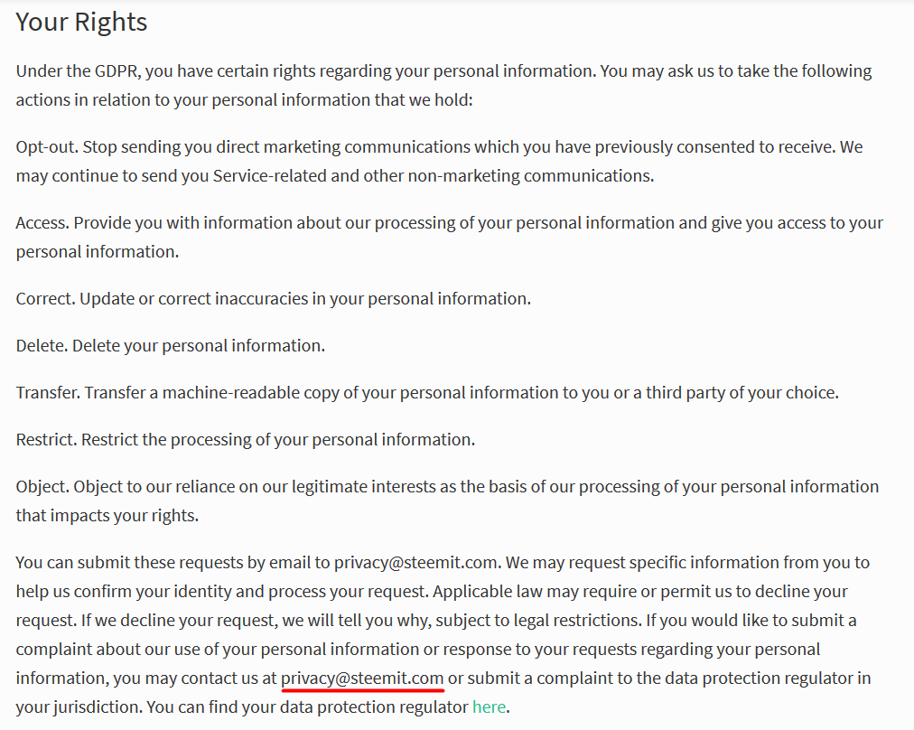 "Also, you can choose to be blocked from being visible on SteemIT by requesting to be added to GDPRUserList.js"