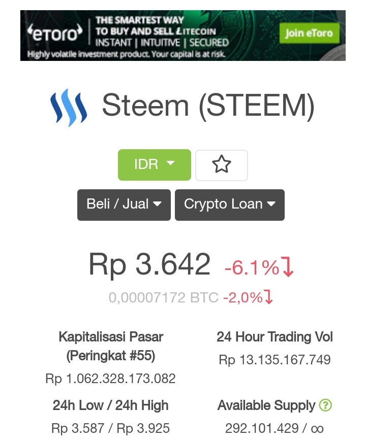 Setahun yang lalu, tepatnya pada 11 januari 2018 harga steem pernah mencapai IDR 100.000, namun sekarang Anda bisa melihatnya sendiri 👇