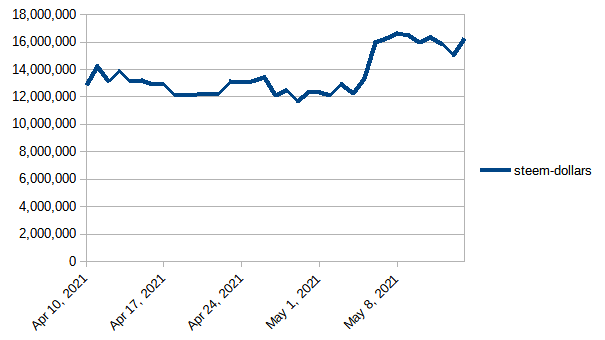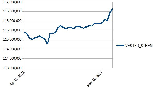 For the second week in a row, the number of powered-up STEEM is the highest value I've seen since I began collecting these numbers. It went up sharply during the last couple of days.