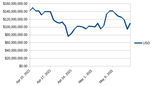 Steem Total Value Powered Up - $108 million - May 14, 2021