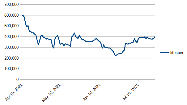 Gained a hair against LTC this week, crossing the 400,000 (LTC) line for the first time since late May.