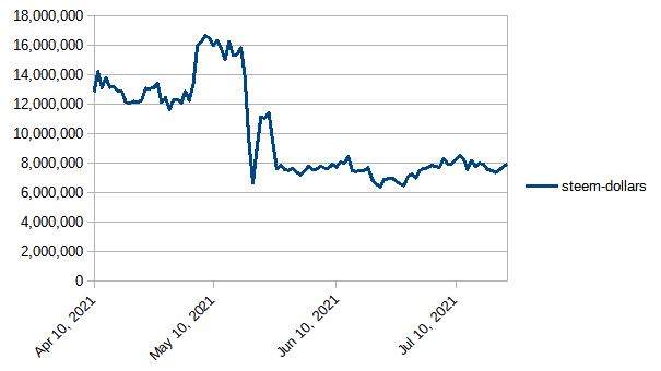 In terms of SBD, the value of powered-up STEEM has been hugging the 8 million line for about two months.