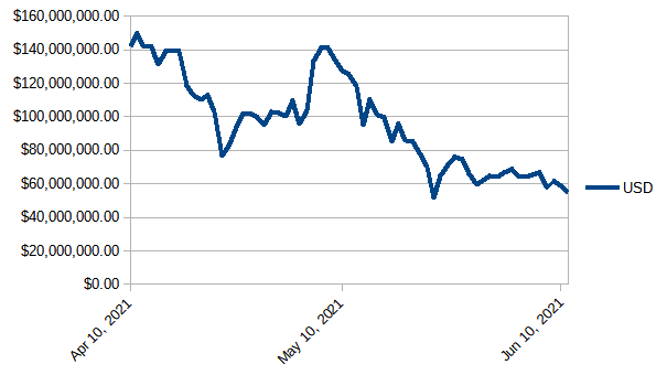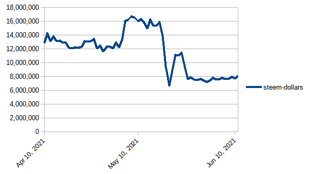 Steem Total Value Powered Up - $55 million - June 11, 2021