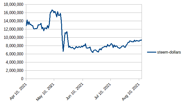 - Steem Total Value Powered Up - $74 million - August 13, 2021