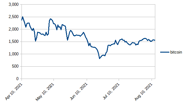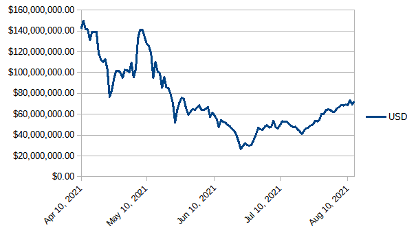 Up by somewhere around 10% since last week in terms of modeled USD value. This continues an up-trend since lows in late June.
