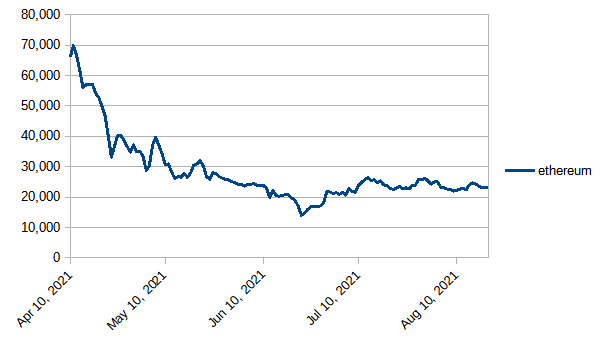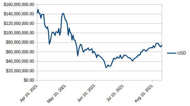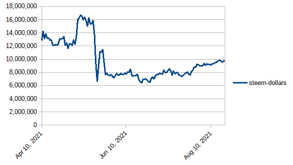 Steem Total Value Powered Up - $75 million - August 20, 2021