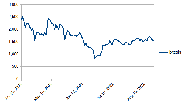 Value of powered-up STEEM in terms of bitcoin (BTC)