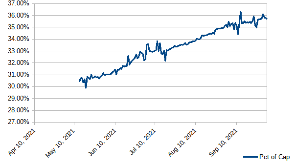 After dipping below 35% last week, we have now seen 8 consecutive days above that mile marker. We have also seen 51 consecutive days above 34%, and 71 straight days above 1/3. We had one day above 36%, earlier in the week. Will we sneak back above 36% again? Will we see 37%?