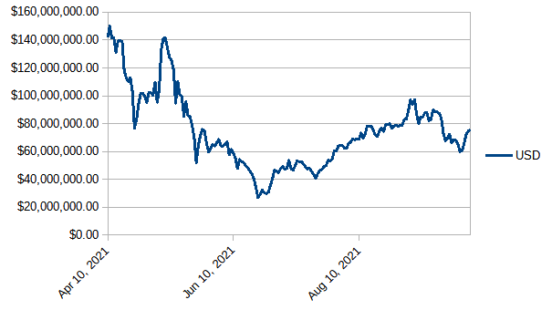 - Steem Total Value Powered Up - $74 million - August 13, 2021