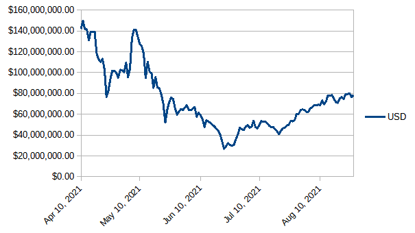 - Steem Total Value Powered Up - $74 million - August 13, 2021