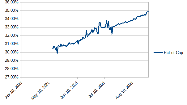 34 consecutive days above 1/3 and 14 consecutive days above 34%. Still trending up, with today's new high at 34.91%. Will we see 35%?