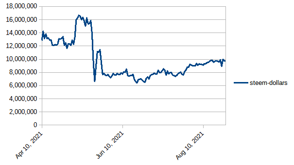 - Steem Total Value Powered Up - $80 million - August 27, 2021