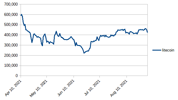 Litecoin gained about 7% in strength against the modeled value of powered-up STEEM