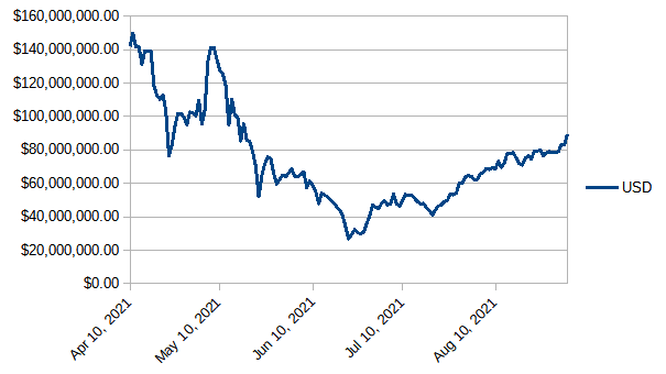 - Steem Total Value Powered Up - $80 million - August 27, 2021