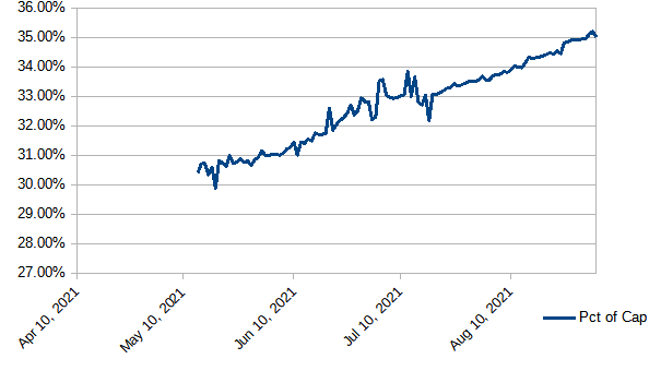 41 consecutive days above 1/3, 21 consecutive days above 34%, and 3 consecutive days above 35%. Will we see 36%?
