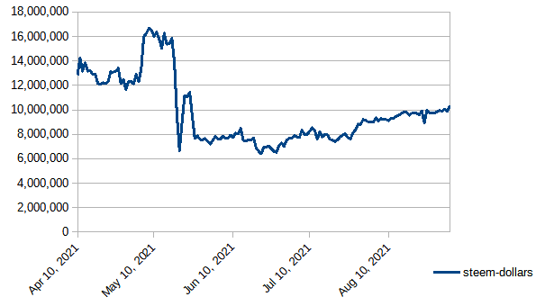 - Steem Total Value Powered Up - $74 million - August 13, 2021