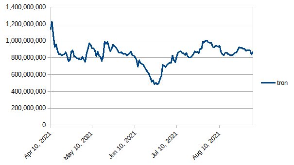 Tron gained strength by about 35 million tokens this week, and is still running in the familiar 800 million to 1 billion band.