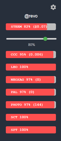 Steem VP is a Google Chrome / Brave browser extension that shows you your voting power for STEEM and a range of steem-engine tokens.