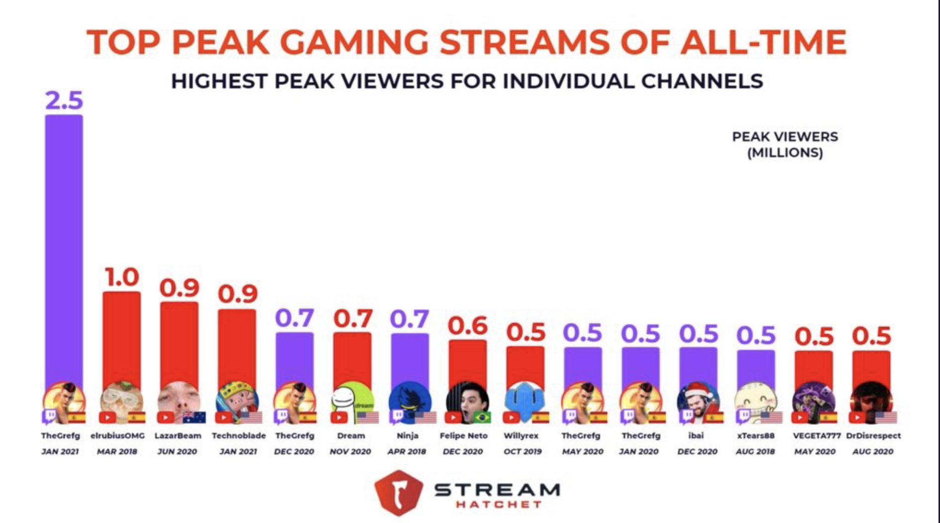 Thegrefg broke so many records during his live stream of his new icon series skin for fortnite with nearly 2.8 Million viewers. Imagine if this was translated on @Dlive and the implications it could have for the streaming platform PsypherPK was screaming for thegrefg to run an add with 2.8M viewers can you imagine the add revenue that would have made. The future is bright for the streaming community, lets hope this translates to DLive too.
