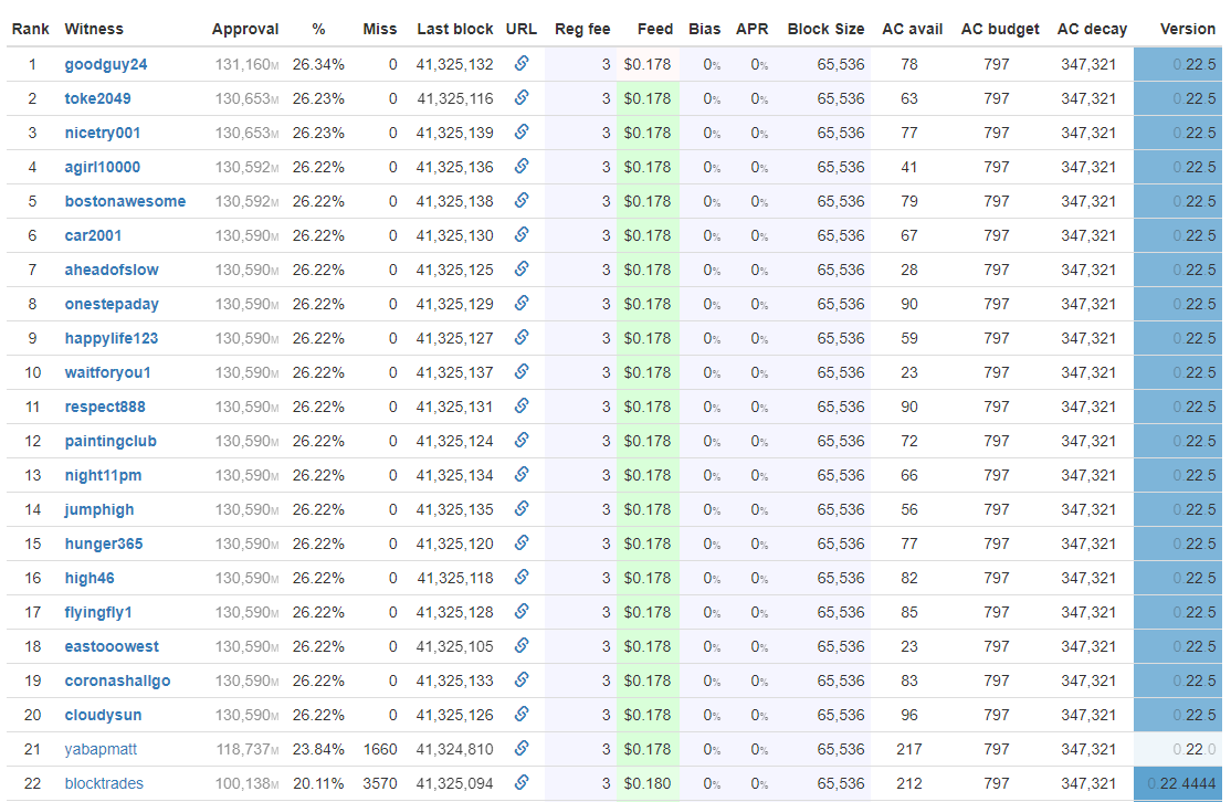 I would handle this a bit bit differently @afrog, but of course everybody is free to vote on their own. For now, I vote blindly the witnesses which have the highest chance to get back into the top 20. Once we have a majority of witnesses again in there, then I will differentiate again.